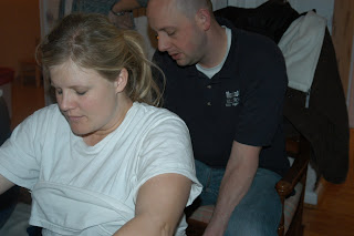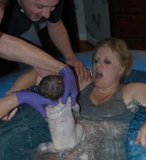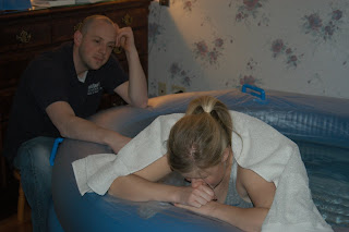 We arrived at the birthing center around 1:15..I was checked (dialated to a 6) and proceeded to labor. At first I opted to sit on the birthing ball..which worked great for a bit (pain wise) but the contractions were coming fast and hard.